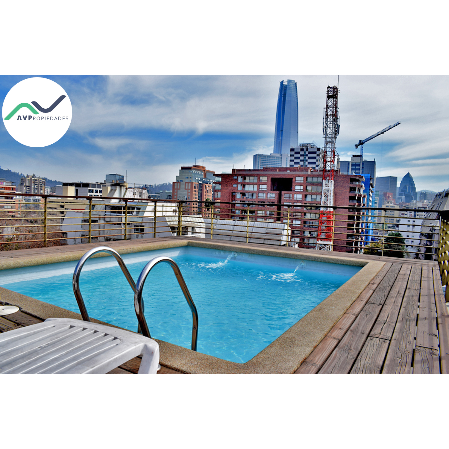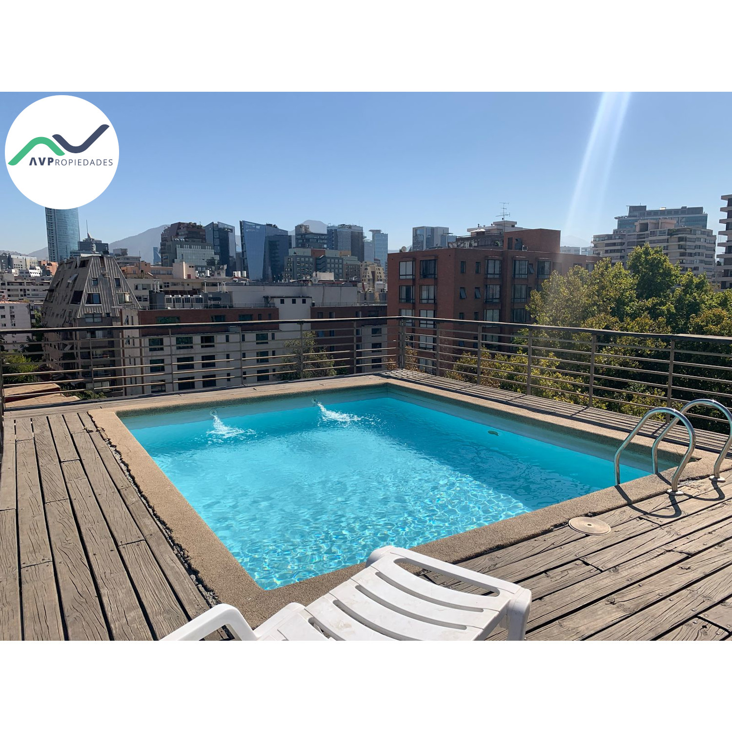 Condominio con accesos controlados 24 hrs, equipado con piscina y lavandería.